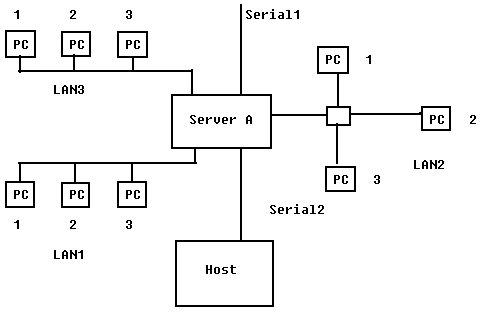 For example, you can create a server-level entry that forces users to access LU number 2 from any link attached to Server A only. This means that users can access this LU only from any PC on LAN1, LAN2, or LAN3, and the dial-in link SERIAL1.