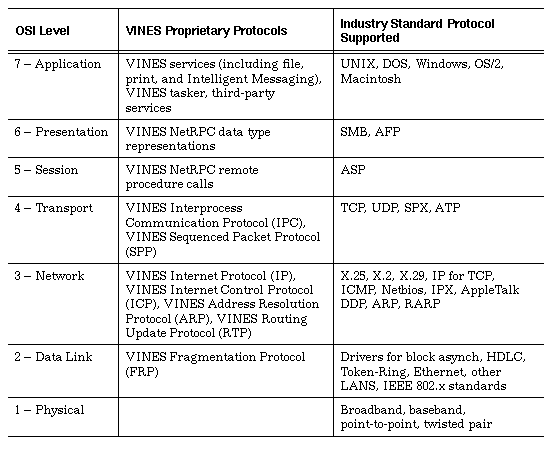 Banyan supports a variety of VINES proprietary protocols and industry standard protocols to achieve seamless communication across LANs and WANs, as shown in Table 2-2.