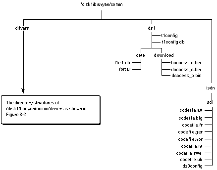 The structure of the /disk1/banyan/comm/drivers directory is shown in Figure 8-2.