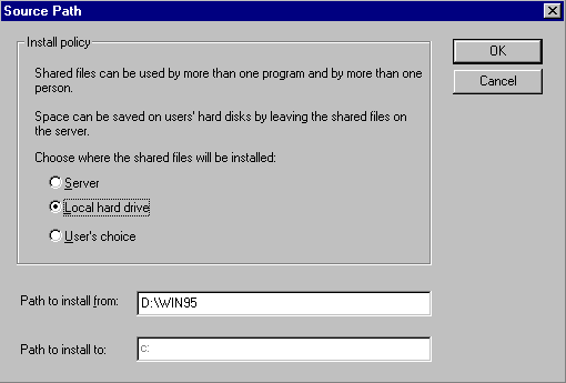 15. Enter D:\win95 as the pathname (assuming D is your CD-ROM drive).