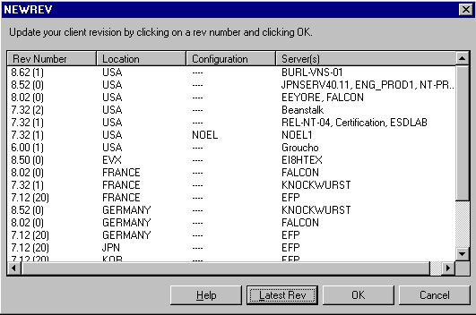 4. Select the new revision and click OK. Your workstation upgrades to the new revision.
