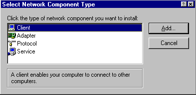 3. Click Add. The Select Network Component Type dialog box appears.