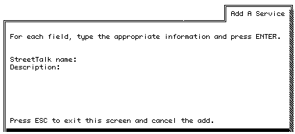 3. Enter a StreetTalk name for the service and a description of the service. For example:
