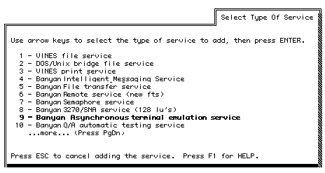 5. Choose Asynchronous terminal emulation service. You are prompted to start the service immediately after creating it.