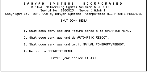 4. Select Shut down services and return console to OPERATOR MENU.