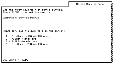 Service backup - Backs up data for a single mail service, file service, StreetTalk Directory Assistance (STDA) service, or third-party service. This is called a single-service backup. Backing up multiple services at the same time requires you to schedule the backup in advance. Refer to Chapter 4 for more information about scheduled backups.