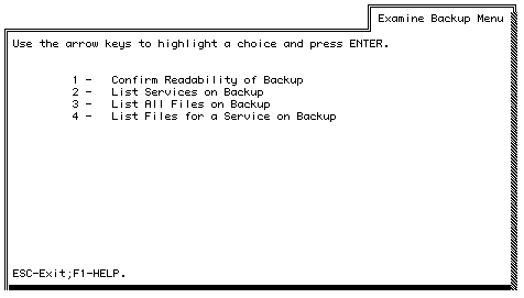 2. Select Examine Backup. The Examine Backup Menu appears.