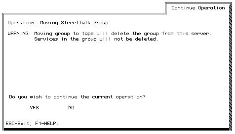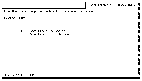 - If the confirmation is successful, the group information is moved to the backup media and deleted from the server. The Move StreetTalk Group Menu appears and displays the following message: