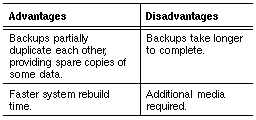 Extending the range of your incremental backups has advantages and disadvantages (Table 3-1).