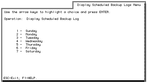 - If you select Scheduled Backup Logs, the Display Scheduled Backup Logs Menu appears. Continue with step 4.