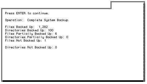 3. When you are finished, press ESC. The Backup Menu appears.