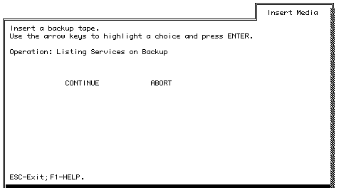 3. Select List Files for a Service on Backup. The Insert Media screen appears.