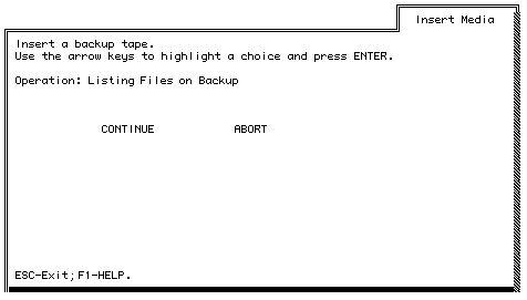 3. Select List All Files on Backup. The Insert Media screen appears.