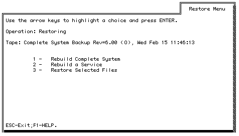 Note: If you do not insert a complete backup into the drive, the Restore Menu does not appear. Cancel the procedure and start over after you obtain the correct backup.