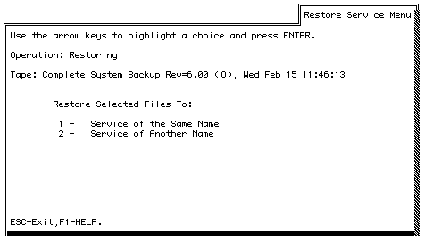 step 8.- If you chose Service of the Same Name in step 6, the Confirm Restore Menu appears. Skip to step 9.