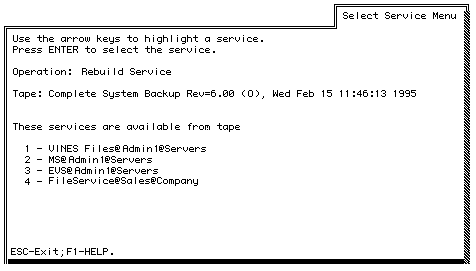 5. Choose Rebuild a Service. The Restore Service Menu appears.