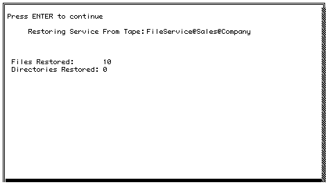 When all of the backup files are restored, the number of restored files and directories is displayed.