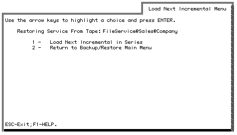10. Press ENTER. The tape rewinds and the Load Next Incremental Menu appears.