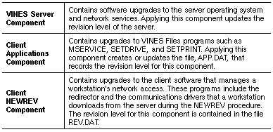 When you upgrade a server by applying all three components of a maintenance patch, users also need to upgrade the Banyan software on their workstations by running NEWREV. Since you can apply components selectively, you can partially upgrade the software and revision level on the server while allowing workstations to maintain a separate client revision level. This allows users to obtain the maximum number of fixes that they can and still not have to NEWREV.