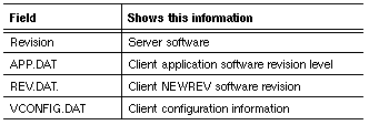 The SHOWREVS command displays revision and configuration information for each of the software components that exist on the server (Table 9-2).