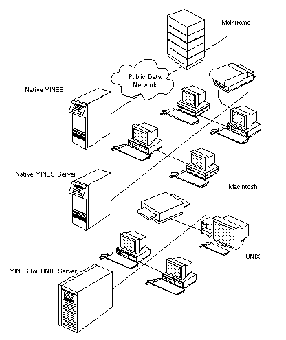 The first native VINES server supports a connection to a Public Data Network (PDN). ![]()
