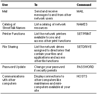 Most VINES features, such as using StreetTalk to locate network resources, using the SETPRINT program to manage your printing, and using the SETDRIVE program to access file volumes on the network, are available through menus and screens.