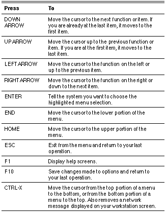 Table 3-2 describes the keys that enable you move within VINES menus.