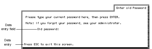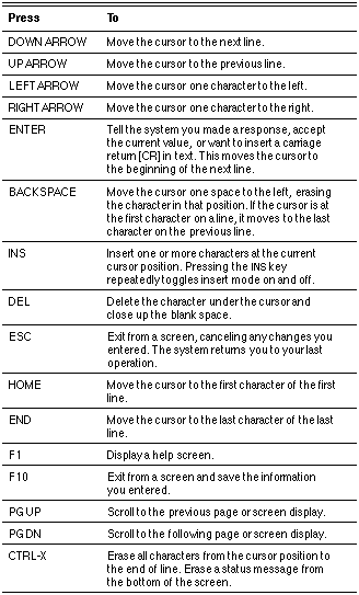VINES data entry screens contain fields where you type data. In these screens, some keys have special functions. The following is an example of a data entry screen. Table 3-3 describes the keys.