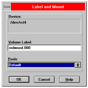 2. Choose Label and Mount from the Media menu. The Label and Mount dialog box appears:
