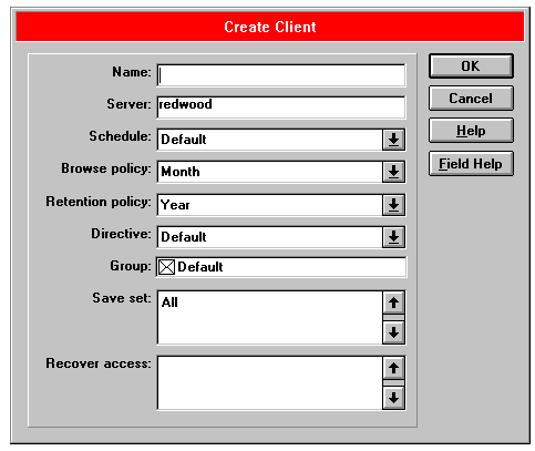 Use the Create Client dialog box for adding a new client to the EBR server. To add a new client, follow these steps:
