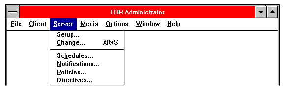 You complete most of these system administration tasks using choices from the Server pull-down menu of the EBR Administrator.