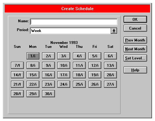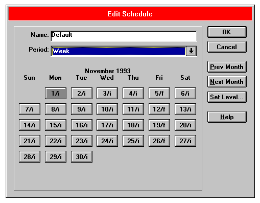 2. If it is not already highlighted, highlight Default, then click Edit or press the [Enter] key. The Edit Schedule dialog box appears, displaying a calendar of the current month: