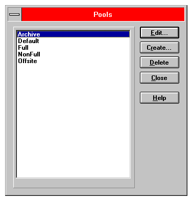 To open the Pools window, choose Pools from the Media menu. The Pools dialog box appears: