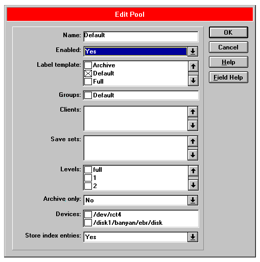 You can use the Default and Archive pools without changing them. To use other pre-configured pools, you must first complete some selections and choose Yes from the Enabled choices. A pool must be enabled in order for EBR to sort data to that pool.