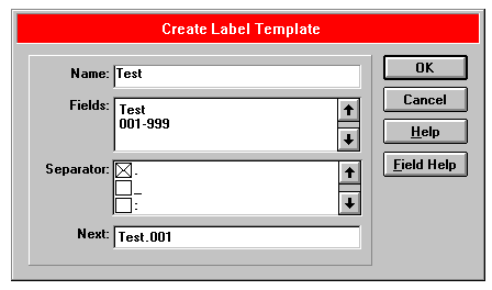 2. Click the Create button to devise a label template called Test. The Create Label Template dialog box appears.