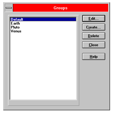 4. Choose Groups from the Client menu. The Groups dialog Box appears.