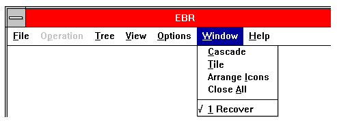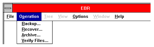 EBR provides you with pull-down menus, speed buttons, dialog boxes, browse windows, and message boxes to assist you with file backup and recovery. This section describes these menus.