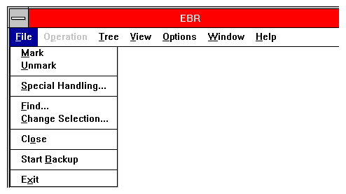 During an EBR backup operation, the File menu changes as follows (other operations provide some different choices):