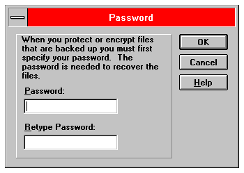 After you set your password using the Password dialog box, your password remains in effect whenever you specify that files should be backed up password-protected or encrypted.