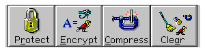 To turn off password-protection or compression, click the Clear speedbar button, which appears to the right of the Protect, Encrypt, and Compress speedbar buttons.
