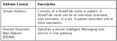 Intelligent Messaging allows users to specify addresses in two formats:
