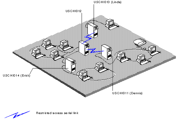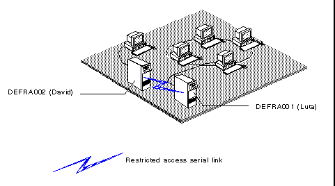 You can exchange mail with users on remote servers through all three types of serial links. However, mail delivery may be interrupted if one link in a series of temporary or restricted links is temporarily inactive. To guarantee delivery of mail through serial links with temporary or restricted connections, use the mail feature, forced message routing.