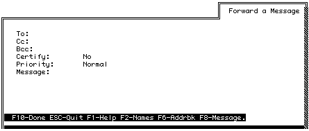 Data entry screens appear when you select the Compose, Answer, and Forward functions from the Mail Main menu. These screens are made up of two parts: