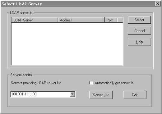 4. In the LDAP Server List on the Select LDAP Server dialog box shown in Figure 2-2, select an LDAP server to manage and click Select.