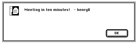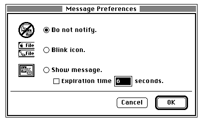 Depending on how you set your message notification preferences, the message dialog boxes remain on your screen until you click OK or press return. Setting your message notification preferences is described later in this chapter.