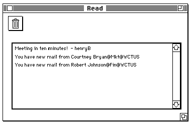 The Read window contains a history of the network messages you receive during your current login session. When you log out of the network, these messages are cleared.