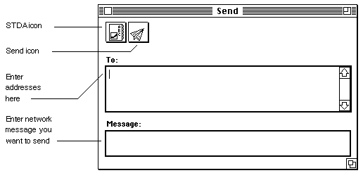 This section describes how to address and send network messages to other users on the network. In addition, you can access STDA for help in addressing by clicking the STDA icon at the top of the Send window.