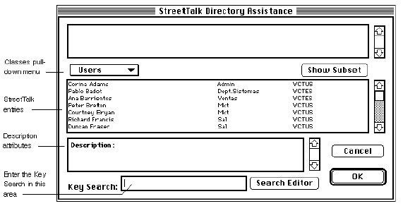You can also use STDA to help find StreetTalk names to include as addresses. To access STDA, click the STDA icon in the Send window. The StreetTalk Directory Assistance window appears: