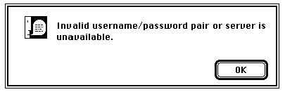 Click OK and try again. Make sure to enter your password using the correct upper-case and lower-case letters. Once you enter a valid user name and password combination, you can proceed as usual.