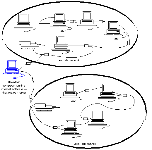 Figure 2-3 shows an AppleTalk Internet Router connecting two small LocalTalk networks.